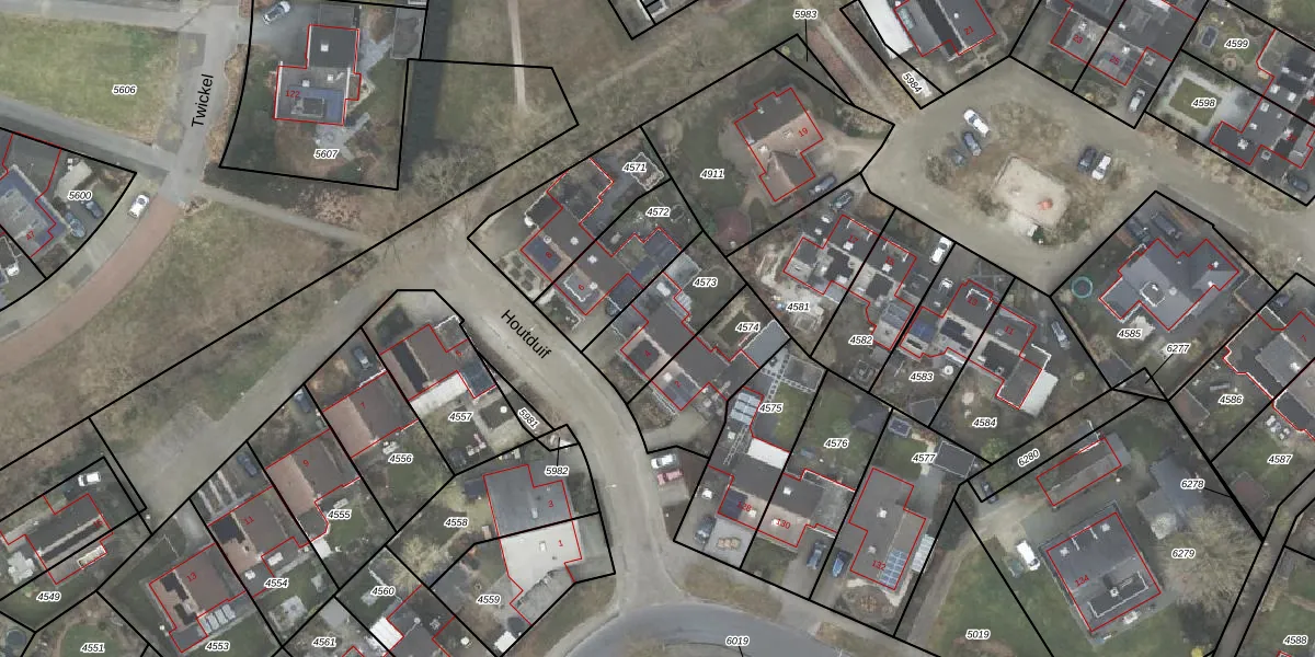 Gebruik de zoekbalk of klik op een perceel voor informatie over de adressen binnen dit perceel.