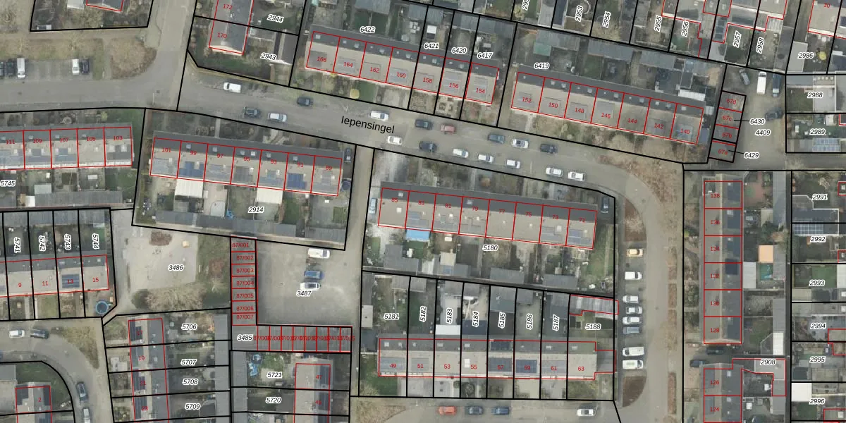 Het perceel waarop Iepensingel 83 staat heeft een oppervlakte van 1565 m². Dit is een zeer groot perceel. De perceeloppervlakte wordt geregistreerd door het Kadaster. Gedetailleerde informatie over de maten van dit perceel kunt u vinden in het rapport Kadastrale kaart met maatvoering van Iepensingel 83.