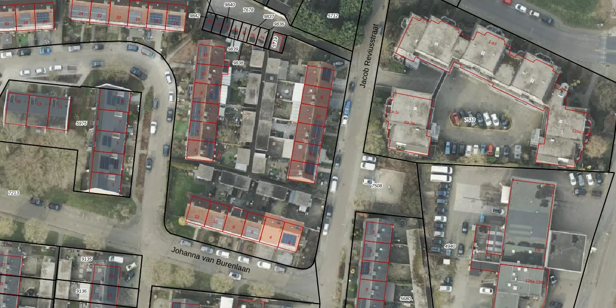 Het perceel waarop Jacob Reviusstraat 14 staat heeft een oppervlakte van 9170 m². Dit is een zeer groot perceel. De perceeloppervlakte wordt geregistreerd door het Kadaster. Gedetailleerde informatie over de maten van dit perceel kunt u vinden in het rapport Kadastrale kaart met maatvoering van Jacob Reviusstraat 14.