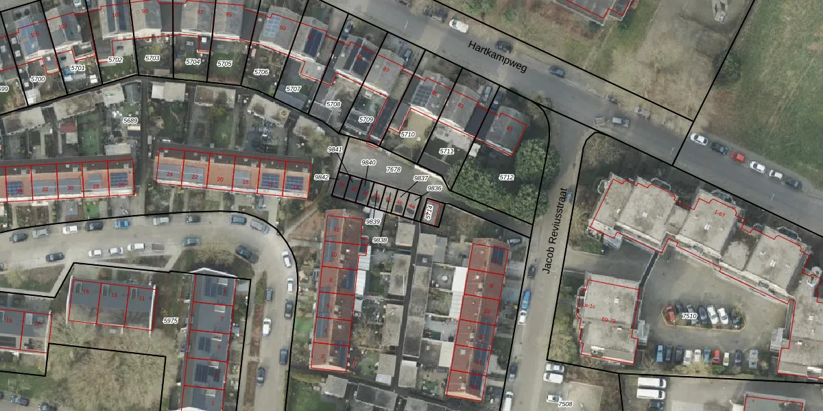 Gebruik de zoekbalk of klik op een perceel voor informatie over de adressen binnen dit perceel.