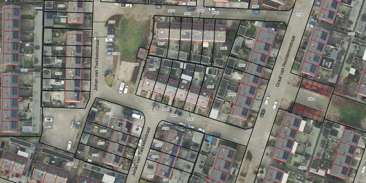 Het perceel waarop Johan van Twickelostraat 19 staat heeft een oppervlakte van 160 m². Dit is een middelgroot perceel. De perceeloppervlakte wordt geregistreerd door het Kadaster. Gedetailleerde informatie over de maten van dit perceel kunt u vinden in het rapport Kadastrale kaart met maatvoering van Johan van Twickelostraat 19.