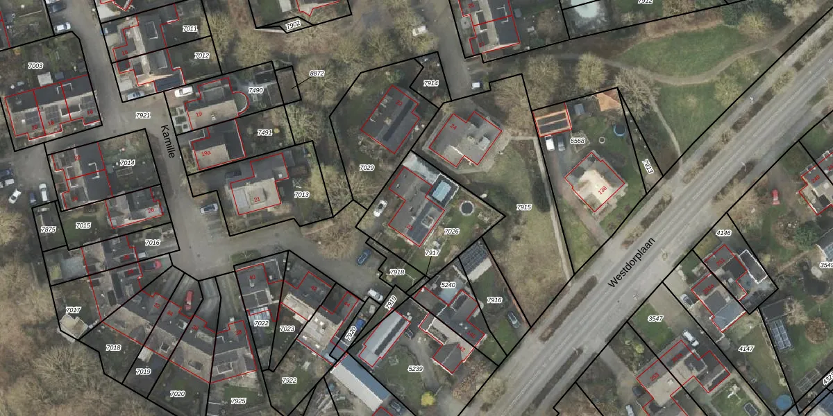 Het perceel waarop Kamille 23 staat heeft een oppervlakte van 565 m². Dit is een groot perceel. De perceeloppervlakte wordt geregistreerd door het Kadaster. Gedetailleerde informatie over de maten van dit perceel kunt u vinden in het rapport Kadastrale kaart met maatvoering van Kamille 23.