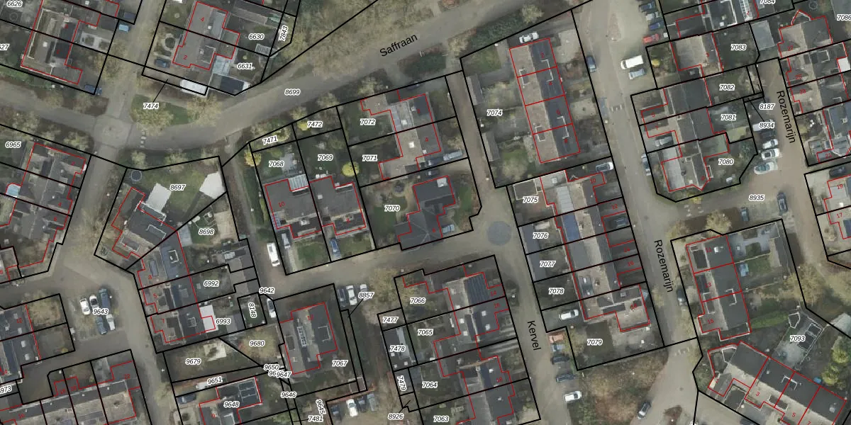 Het perceel waarop Kervel 6 staat heeft een oppervlakte van 427 m². Dit is een groot perceel. De perceeloppervlakte wordt geregistreerd door het Kadaster. Gedetailleerde informatie over de maten van dit perceel kunt u vinden in het rapport Kadastrale kaart met maatvoering van Kervel 6.