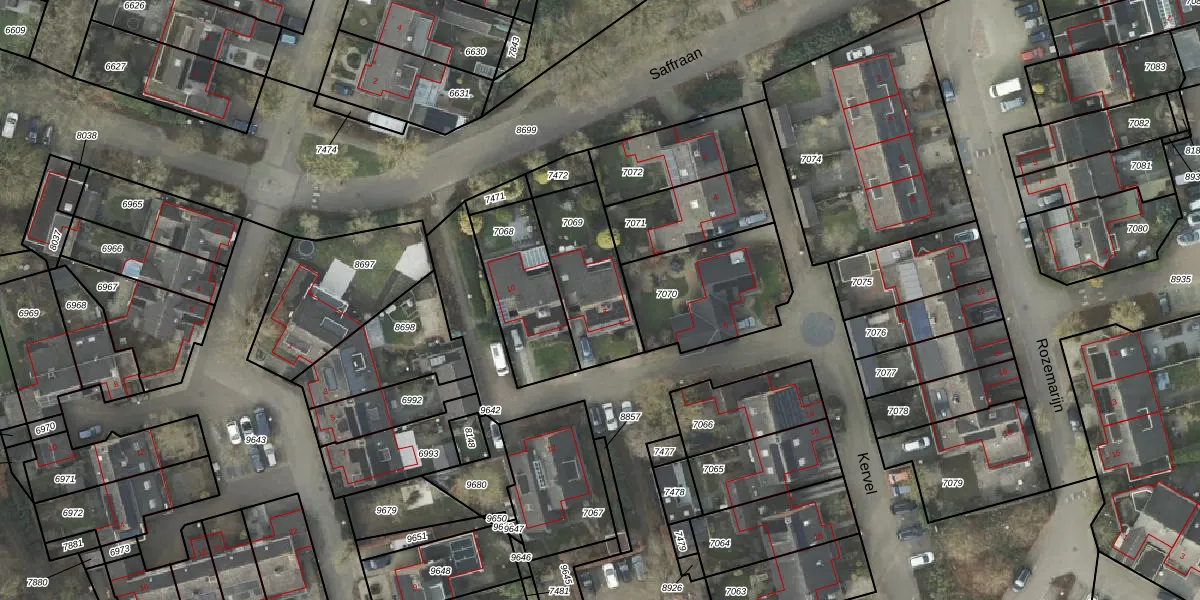 Het perceel waarop Kervel 8 staat heeft een oppervlakte van 335 m². Dit is een groot perceel. De perceeloppervlakte wordt geregistreerd door het Kadaster. Gedetailleerde informatie over de maten van dit perceel kunt u vinden in het rapport Kadastrale kaart met maatvoering van Kervel 8.