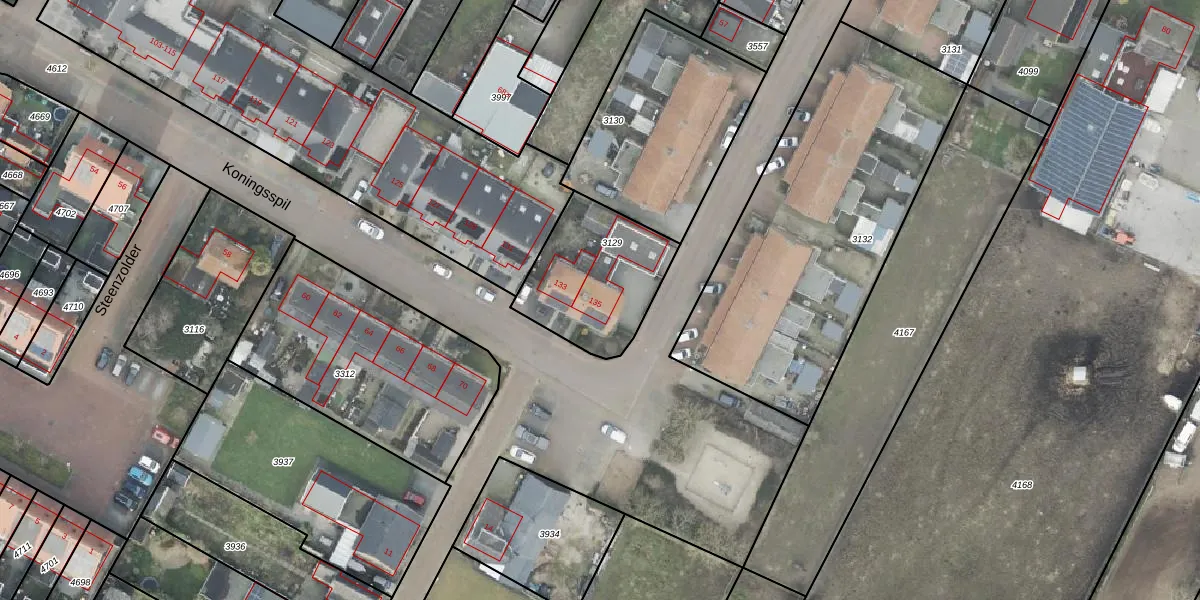 Het perceel waarop Koningsspil 135 staat heeft een oppervlakte van 455 m². Dit is een groot perceel. De perceeloppervlakte wordt geregistreerd door het Kadaster. Gedetailleerde informatie over de maten van dit perceel kunt u vinden in het rapport Kadastrale kaart met maatvoering van Koningsspil 135.