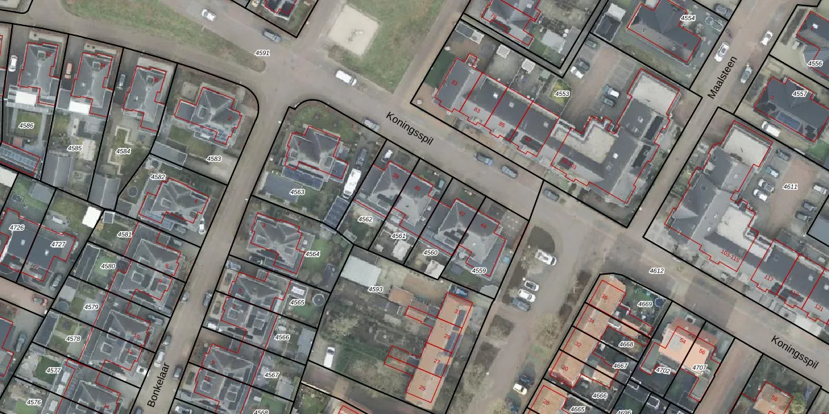 Het perceel waarop Koningsspil 40 staat heeft een oppervlakte van 229 m². Dit is een middelgroot perceel. De perceeloppervlakte wordt geregistreerd door het Kadaster. Gedetailleerde informatie over de maten van dit perceel kunt u vinden in het rapport Kadastrale kaart met maatvoering van Koningsspil 40.