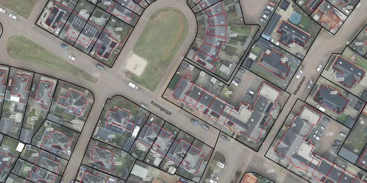 Het perceel waarop Koningsspil 81 staat heeft een oppervlakte van 1836 m². Dit is een zeer groot perceel. De perceeloppervlakte wordt geregistreerd door het Kadaster. Gedetailleerde informatie over de maten van dit perceel kunt u vinden in het rapport Kadastrale kaart met maatvoering van Koningsspil 81.