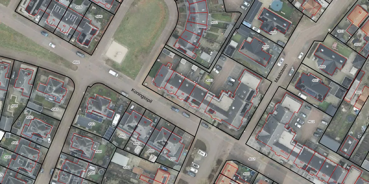Het perceel waarop Koningsspil 85 staat heeft een oppervlakte van 1836 m². Dit is een zeer groot perceel. De perceeloppervlakte wordt geregistreerd door het Kadaster. Gedetailleerde informatie over de maten van dit perceel kunt u vinden in het rapport Kadastrale kaart met maatvoering van Koningsspil 85.