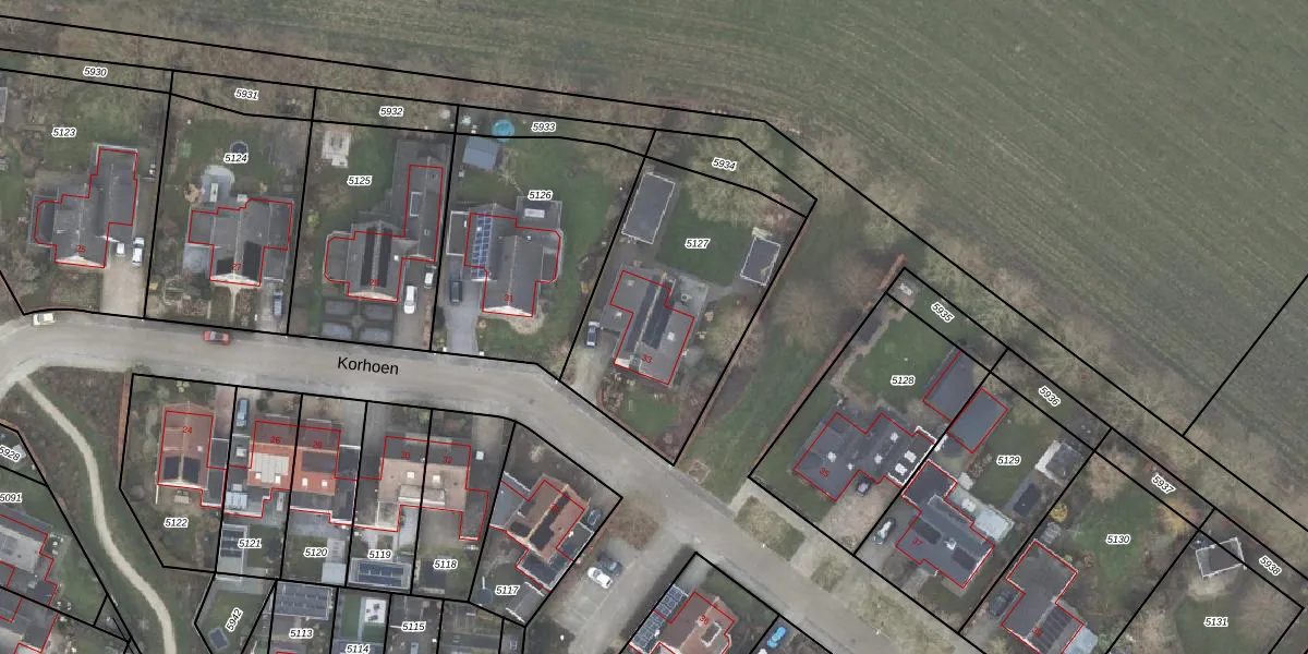 Het perceel waarop Korhoen 33 staat heeft een oppervlakte van 962 m². Dit is een groot perceel. De perceeloppervlakte wordt geregistreerd door het Kadaster. Gedetailleerde informatie over de maten van dit perceel kunt u vinden in het rapport Kadastrale kaart met maatvoering van Korhoen 33.