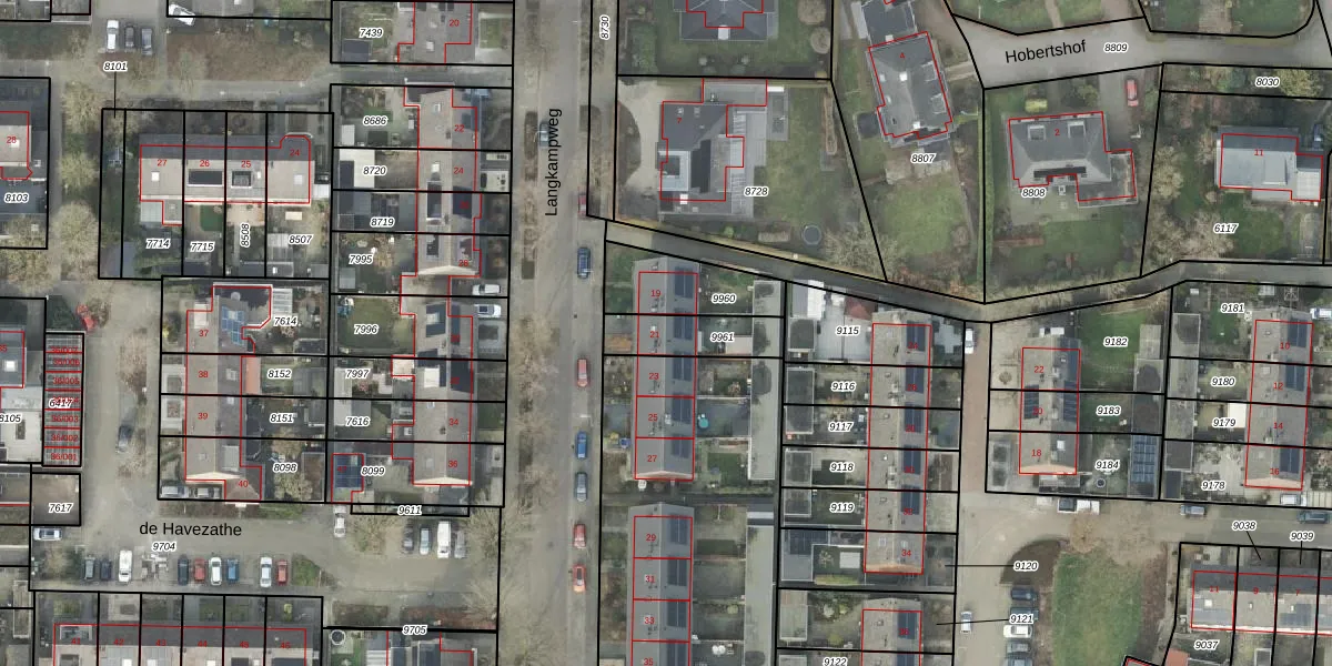 Langkampweg 21 is gelegen op kadastraal perceel RTE00L9961. Deze kadastrale aanduiding is uniek en wordt gebruikt door het Kadaster om eigendomsrechten en andere zakelijke rechten vast te leggen. Het perceel maakt onderdeel uit van de kadastrale gemeente Raalte.