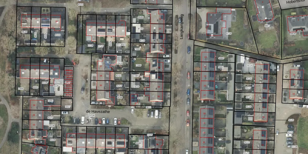 Langkampweg 32 is gelegen op kadastraal perceel RTE00L7997. Deze kadastrale aanduiding is uniek en wordt gebruikt door het Kadaster om eigendomsrechten en andere zakelijke rechten vast te leggen. Het perceel maakt onderdeel uit van de kadastrale gemeente Raalte.