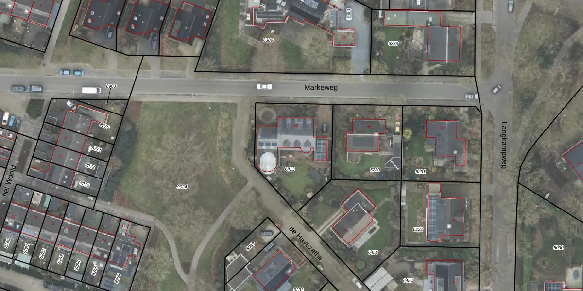 Markeweg 30 is gelegen op kadastraal perceel RTE00L6413. Deze kadastrale aanduiding is uniek en wordt gebruikt door het Kadaster om eigendomsrechten en andere zakelijke rechten vast te leggen. Het perceel maakt onderdeel uit van de kadastrale gemeente Raalte.