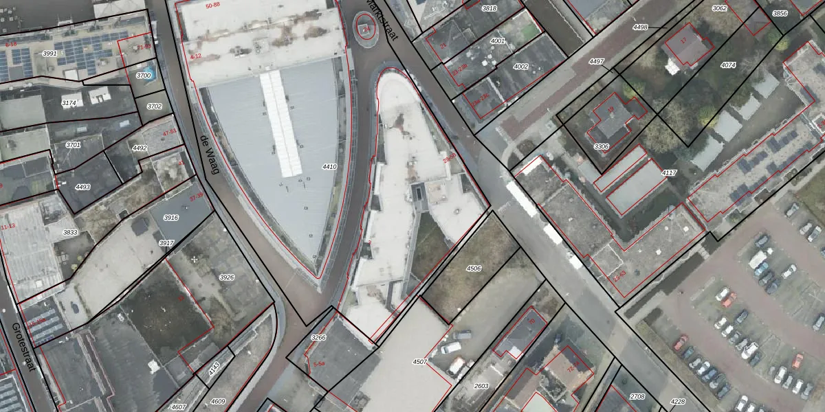 Het perceel waarop Marktstraat 54 staat heeft een oppervlakte van 5163 m². Dit is een zeer groot perceel. De perceeloppervlakte wordt geregistreerd door het Kadaster. Gedetailleerde informatie over de maten van dit perceel kunt u vinden in het rapport Kadastrale kaart met maatvoering van Marktstraat 54.