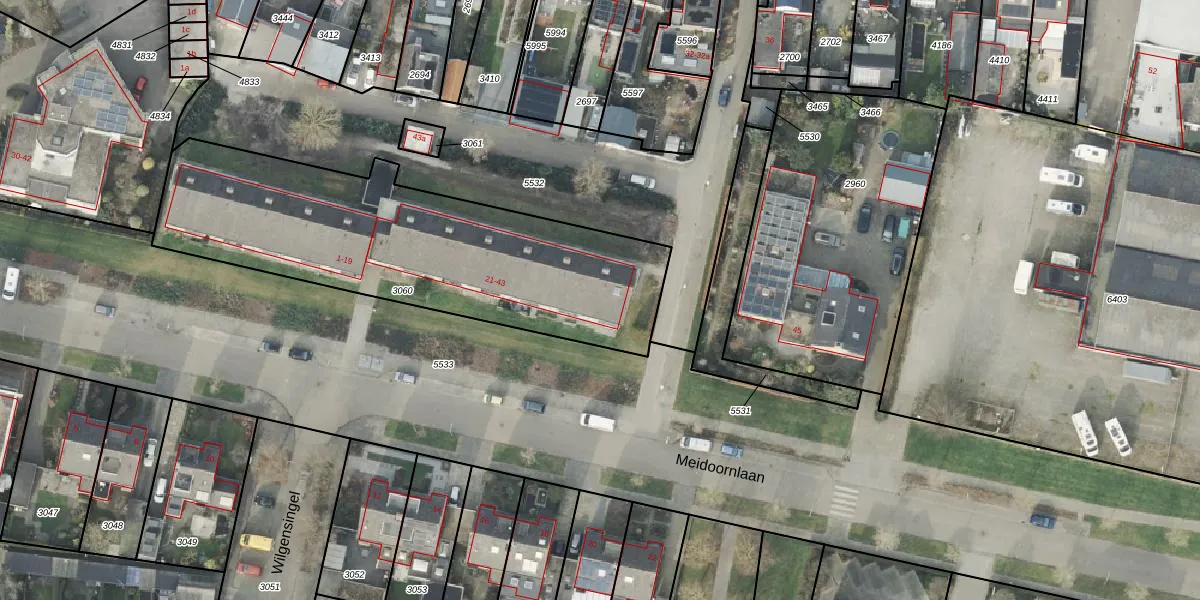 Meidoornlaan 41 is gelegen op kadastraal perceel RTE00F3060. Deze kadastrale aanduiding is uniek en wordt gebruikt door het Kadaster om eigendomsrechten en andere zakelijke rechten vast te leggen. Het perceel maakt onderdeel uit van de kadastrale gemeente Raalte.