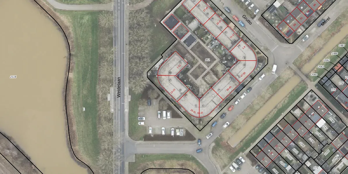 Het perceel waarop Merel 15 staat heeft een oppervlakte van 3057 m². Dit is een zeer groot perceel. De perceeloppervlakte wordt geregistreerd door het Kadaster. Gedetailleerde informatie over de maten van dit perceel kunt u vinden in het rapport Kadastrale kaart met maatvoering van Merel 15.