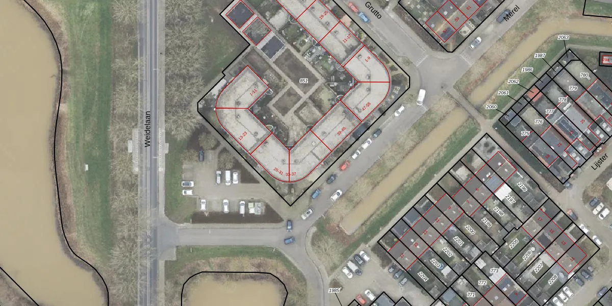 Het perceel waarop Merel 37 staat heeft een oppervlakte van 3057 m². Dit is een zeer groot perceel. De perceeloppervlakte wordt geregistreerd door het Kadaster. Gedetailleerde informatie over de maten van dit perceel kunt u vinden in het rapport Kadastrale kaart met maatvoering van Merel 37.
