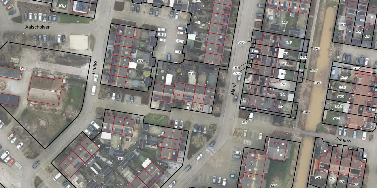 Het perceel waarop Merel 87 staat heeft een oppervlakte van 849 m². Dit is een groot perceel. De perceeloppervlakte wordt geregistreerd door het Kadaster. Gedetailleerde informatie over de maten van dit perceel kunt u vinden in het rapport Kadastrale kaart met maatvoering van Merel 87.