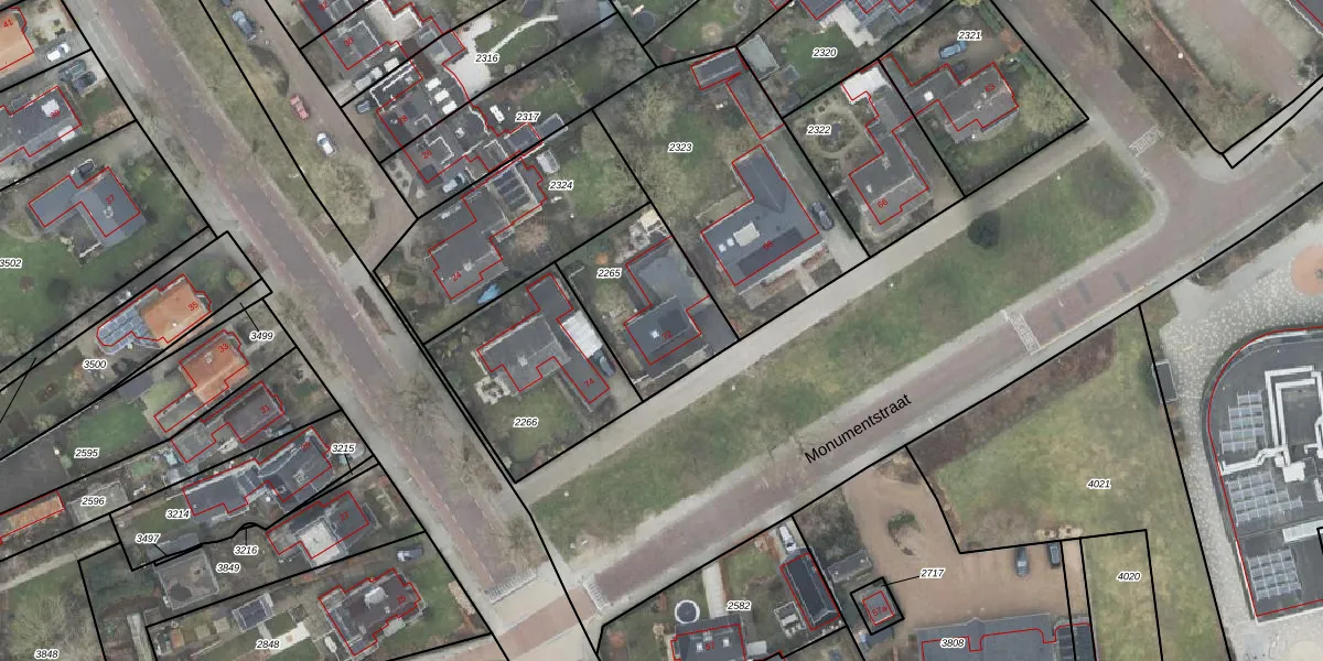 Het perceel waarop Monumentstraat 72 staat heeft een oppervlakte van 430 m². Dit is een groot perceel. De perceeloppervlakte wordt geregistreerd door het Kadaster. Gedetailleerde informatie over de maten van dit perceel kunt u vinden in het rapport Kadastrale kaart met maatvoering van Monumentstraat 72.