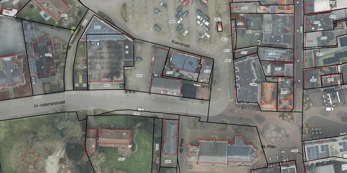 Het perceel waarop Munstersestraat 2-a staat heeft een oppervlakte van 901 m². Dit is een groot perceel. De perceeloppervlakte wordt geregistreerd door het Kadaster. Gedetailleerde informatie over de maten van dit perceel kunt u vinden in het rapport Kadastrale kaart met maatvoering van Munstersestraat 2-a.
