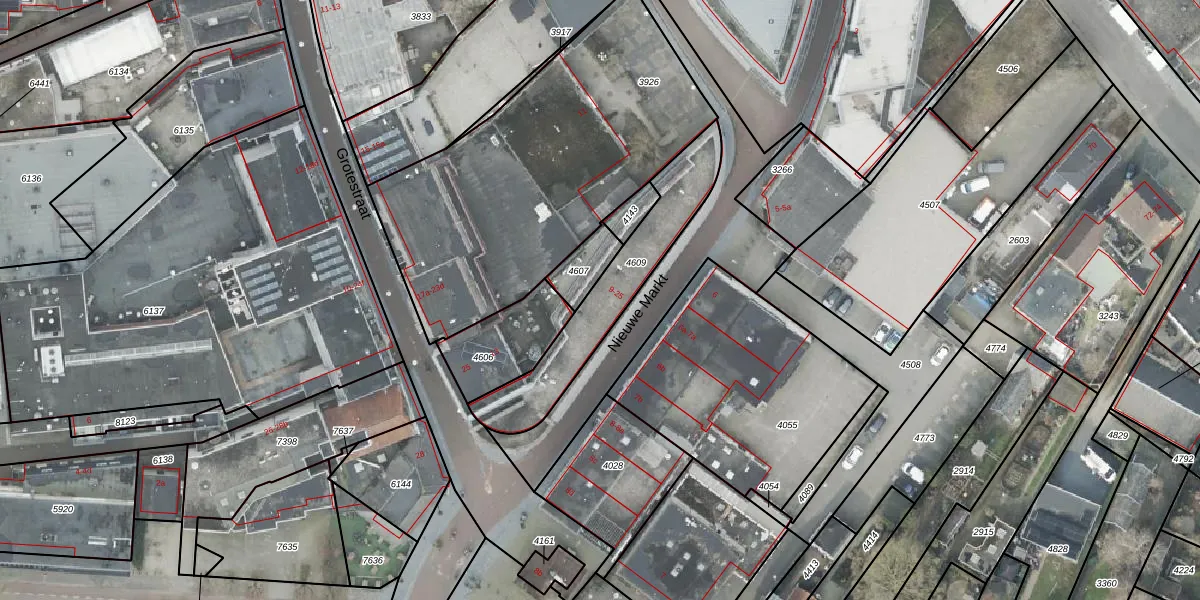 Het perceel waarop Nieuwe Markt 10 staat heeft een oppervlakte van 434 m². Dit is een groot perceel. De perceeloppervlakte wordt geregistreerd door het Kadaster. Gedetailleerde informatie over de maten van dit perceel kunt u vinden in het rapport Kadastrale kaart met maatvoering van Nieuwe Markt 10.