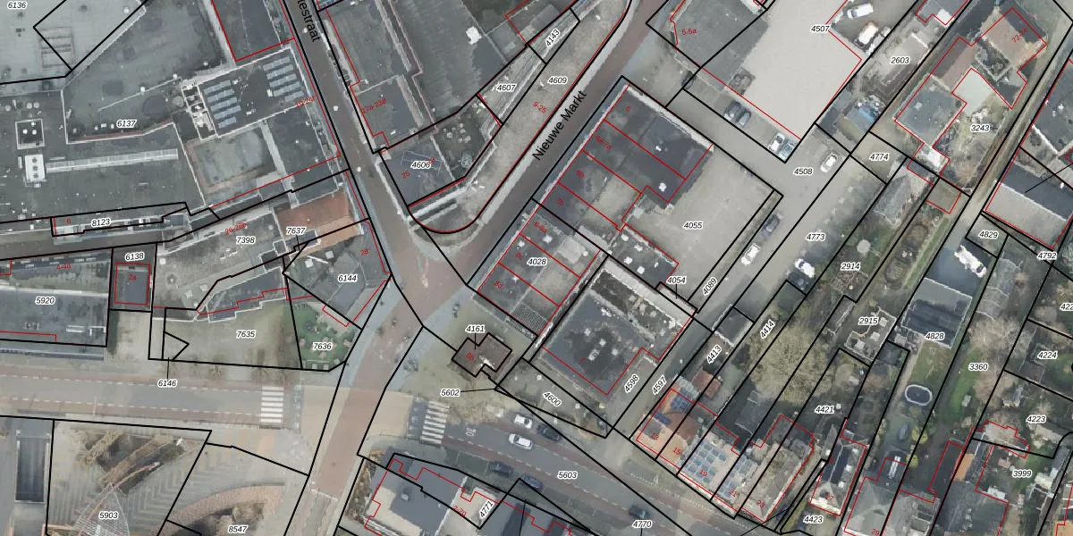 Het perceel waarop Nieuwe Markt 8-c staat heeft een oppervlakte van 365 m². Dit is een groot perceel. De perceeloppervlakte wordt geregistreerd door het Kadaster. Gedetailleerde informatie over de maten van dit perceel kunt u vinden in het rapport Kadastrale kaart met maatvoering van Nieuwe Markt 8-c.