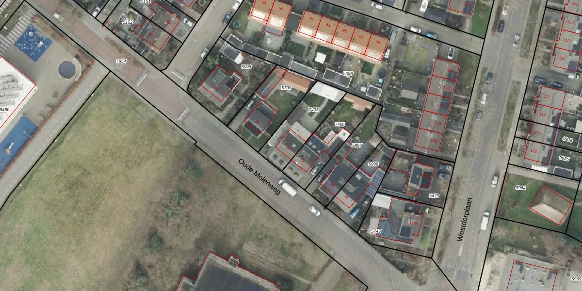 Het perceel waarop Oude Molenweg 24 staat heeft een oppervlakte van 345 m². Dit is een groot perceel. De perceeloppervlakte wordt geregistreerd door het Kadaster. Gedetailleerde informatie over de maten van dit perceel kunt u vinden in het rapport Kadastrale kaart met maatvoering van Oude Molenweg 24.