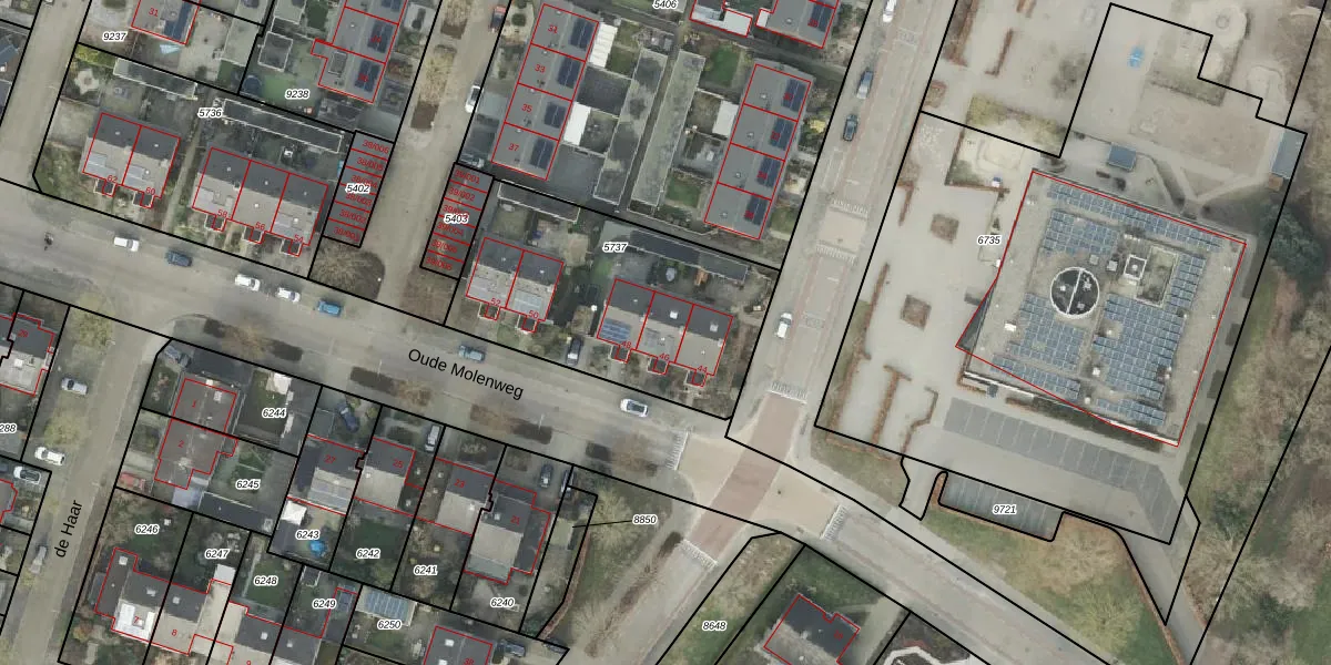 Het perceel waarop Oude Molenweg 46 staat heeft een oppervlakte van 1067 m². Dit is een zeer groot perceel. De perceeloppervlakte wordt geregistreerd door het Kadaster. Gedetailleerde informatie over de maten van dit perceel kunt u vinden in het rapport Kadastrale kaart met maatvoering van Oude Molenweg 46.