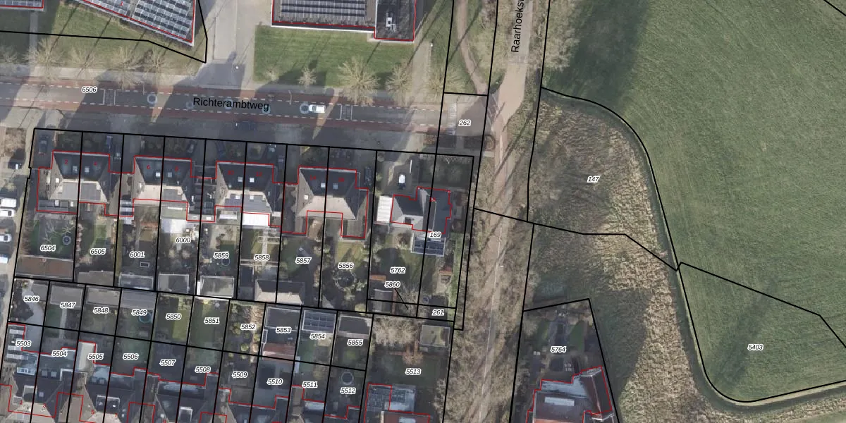 Richterambtweg 18 is gelegen op kadastraal perceel RTE00A5762. Deze kadastrale aanduiding is uniek en wordt gebruikt door het Kadaster om eigendomsrechten en andere zakelijke rechten vast te leggen. Het perceel maakt onderdeel uit van de kadastrale gemeente Raalte.