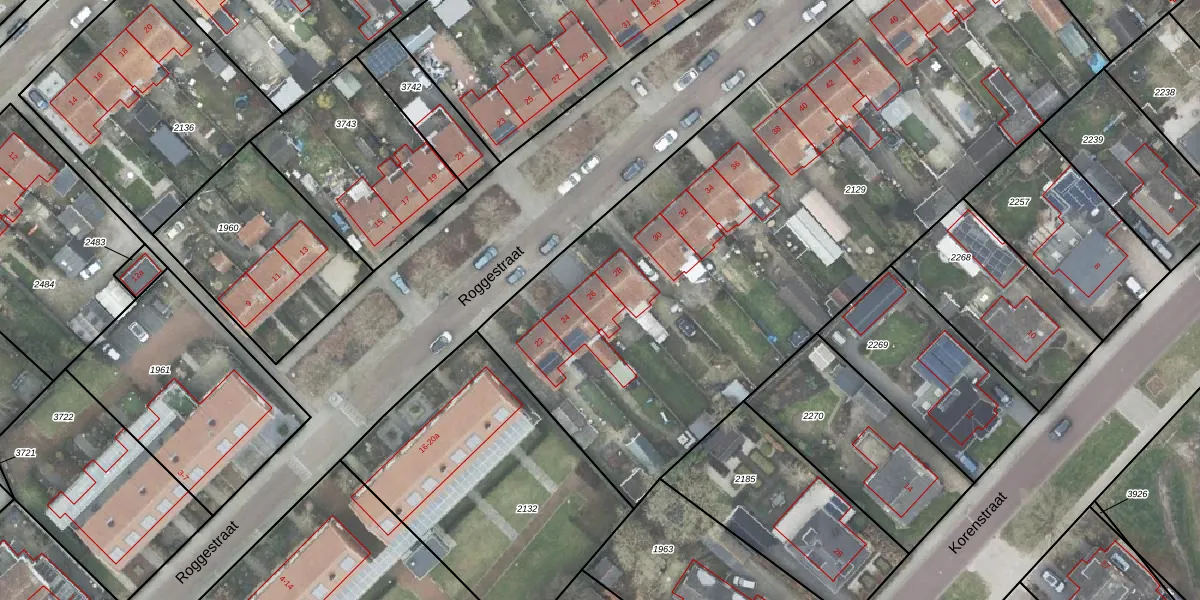 Het perceel waarop Roggestraat 26 staat heeft een oppervlakte van 4105 m². Dit is een zeer groot perceel. De perceeloppervlakte wordt geregistreerd door het Kadaster. Gedetailleerde informatie over de maten van dit perceel kunt u vinden in het rapport Kadastrale kaart met maatvoering van Roggestraat 26.