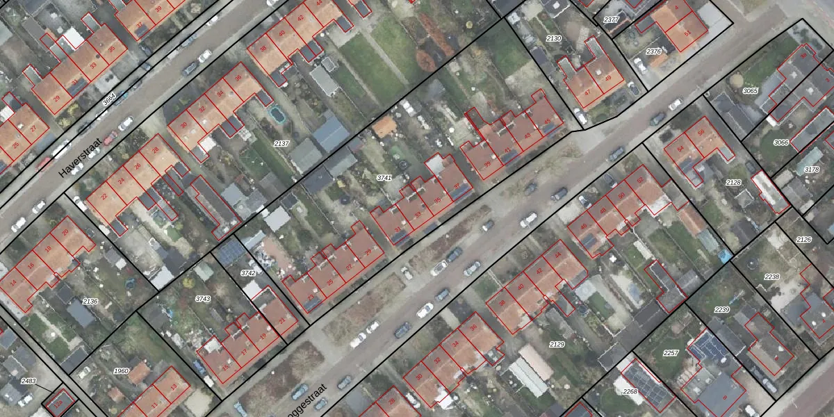 Het perceel waarop Roggestraat 33 staat heeft een oppervlakte van 2435 m². Dit is een zeer groot perceel. De perceeloppervlakte wordt geregistreerd door het Kadaster. Gedetailleerde informatie over de maten van dit perceel kunt u vinden in het rapport Kadastrale kaart met maatvoering van Roggestraat 33.