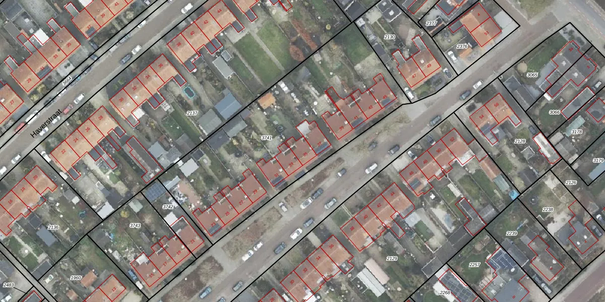 Het perceel waarop Roggestraat 35 staat heeft een oppervlakte van 2435 m². Dit is een zeer groot perceel. De perceeloppervlakte wordt geregistreerd door het Kadaster. Gedetailleerde informatie over de maten van dit perceel kunt u vinden in het rapport Kadastrale kaart met maatvoering van Roggestraat 35.