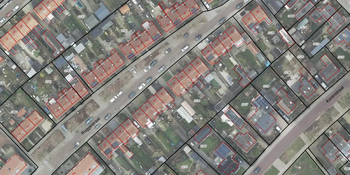 Het perceel waarop Roggestraat 38 staat heeft een oppervlakte van 4105 m². Dit is een zeer groot perceel. De perceeloppervlakte wordt geregistreerd door het Kadaster. Gedetailleerde informatie over de maten van dit perceel kunt u vinden in het rapport Kadastrale kaart met maatvoering van Roggestraat 38.