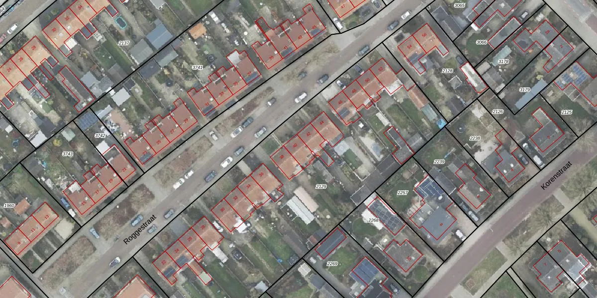 Het perceel waarop Roggestraat 40 staat heeft een oppervlakte van 4105 m². Dit is een zeer groot perceel. De perceeloppervlakte wordt geregistreerd door het Kadaster. Gedetailleerde informatie over de maten van dit perceel kunt u vinden in het rapport Kadastrale kaart met maatvoering van Roggestraat 40.
