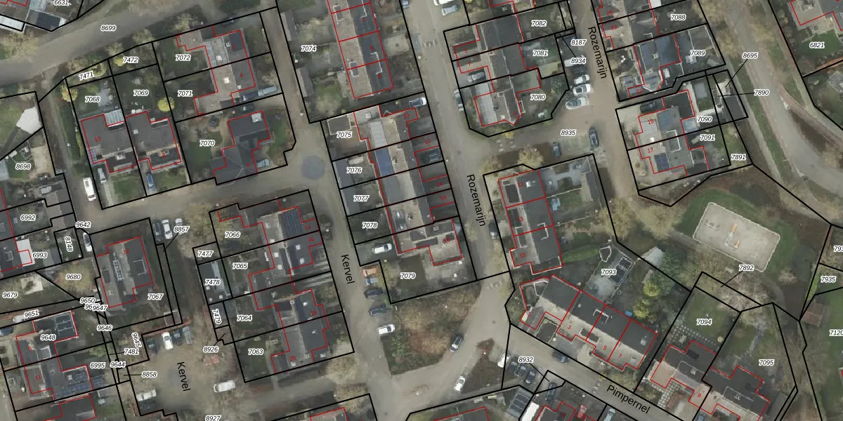 Het perceel waarop Rozemarijn 16 staat heeft een oppervlakte van 179 m². Dit is een middelgroot perceel. De perceeloppervlakte wordt geregistreerd door het Kadaster. Gedetailleerde informatie over de maten van dit perceel kunt u vinden in het rapport Kadastrale kaart met maatvoering van Rozemarijn 16.