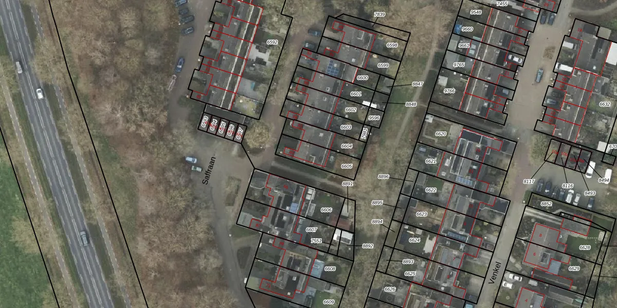 Het perceel waarop Saffraan 63 staat heeft een oppervlakte van 191 m². Dit is een middelgroot perceel. De perceeloppervlakte wordt geregistreerd door het Kadaster. Gedetailleerde informatie over de maten van dit perceel kunt u vinden in het rapport Kadastrale kaart met maatvoering van Saffraan 63.