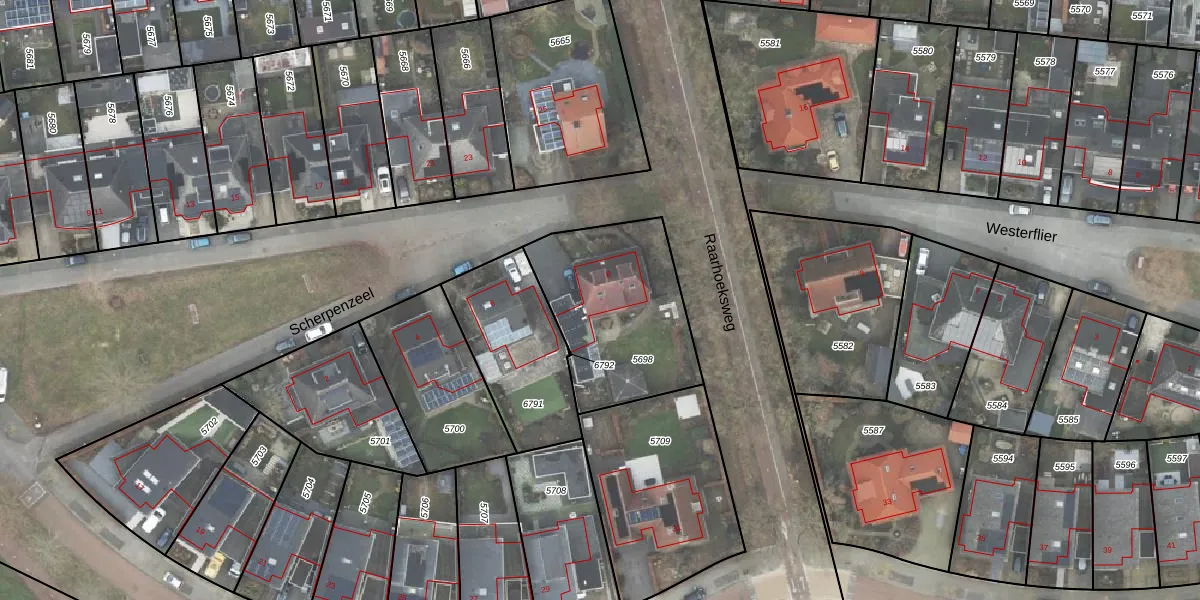 Gebruik de zoekbalk of klik op een perceel voor informatie over de adressen binnen dit perceel.