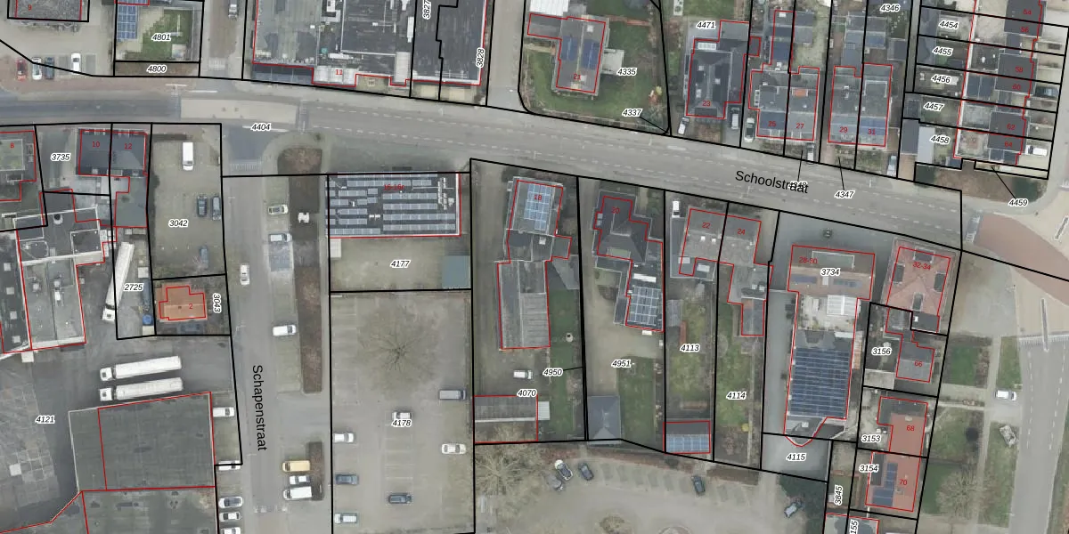 Het perceel waarop Schoolstraat 18 staat heeft een oppervlakte van 1065 m². Dit is een zeer groot perceel. De perceeloppervlakte wordt geregistreerd door het Kadaster. Gedetailleerde informatie over de maten van dit perceel kunt u vinden in het rapport Kadastrale kaart met maatvoering van Schoolstraat 18.