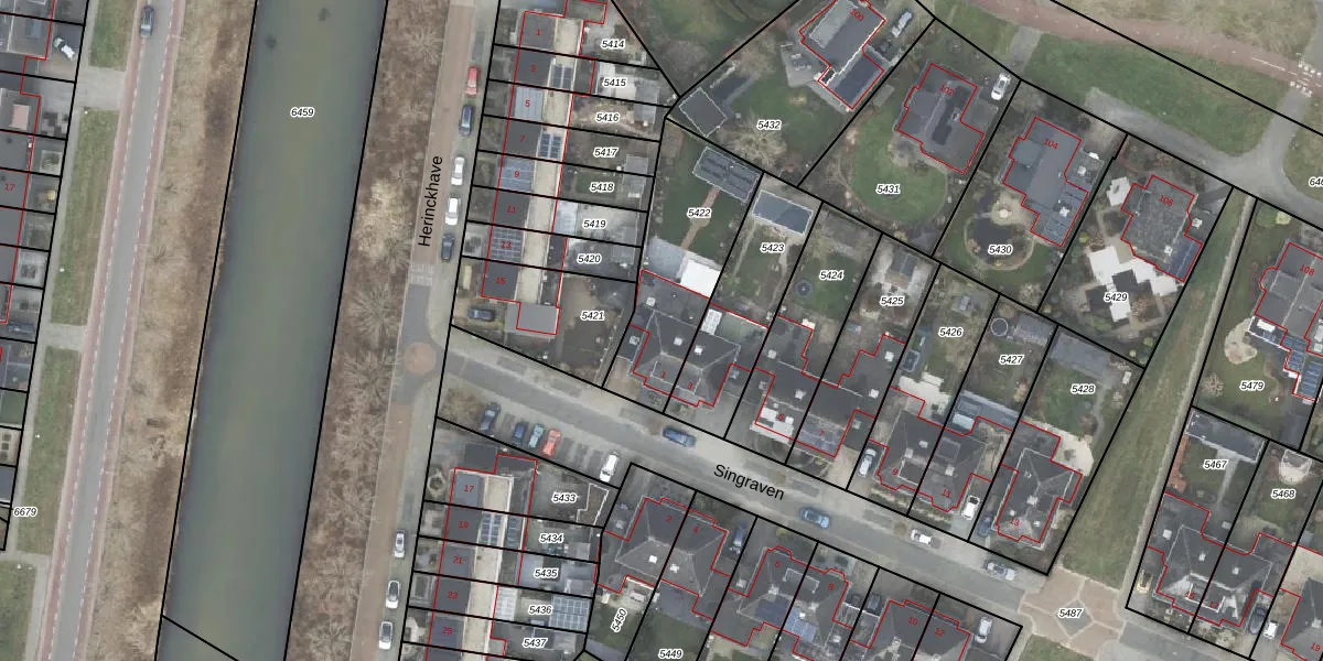 Het perceel waarop Singraven 1 staat heeft een oppervlakte van 505 m². Dit is een groot perceel. De perceeloppervlakte wordt geregistreerd door het Kadaster. Gedetailleerde informatie over de maten van dit perceel kunt u vinden in het rapport Kadastrale kaart met maatvoering van Singraven 1.