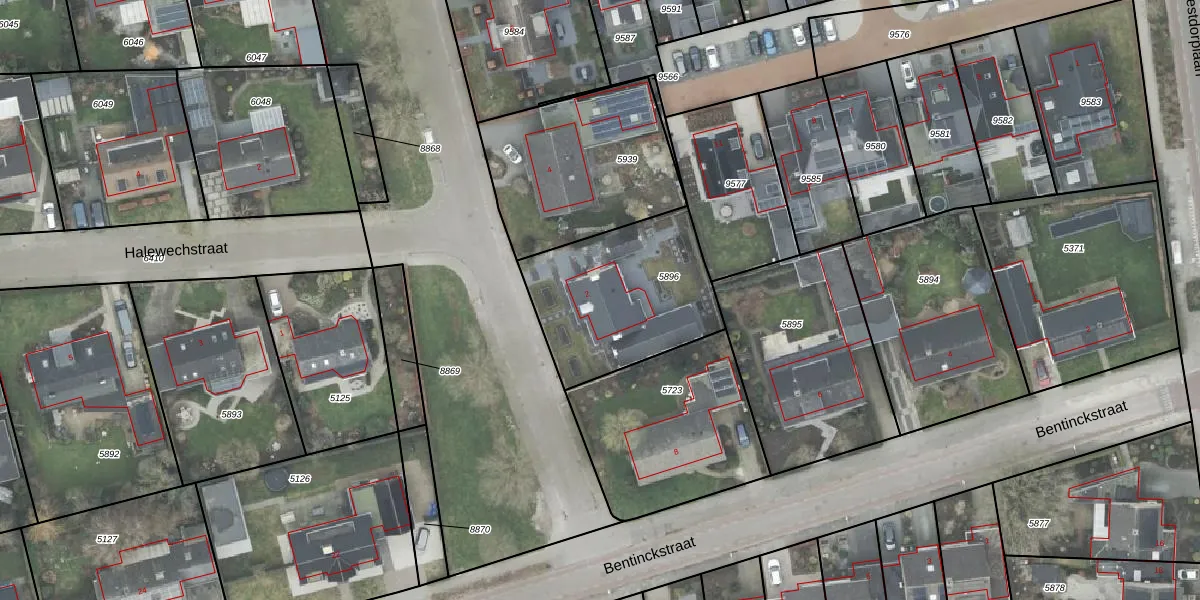 Gebruik de zoekbalk of klik op een perceel voor informatie over de adressen binnen dit perceel.