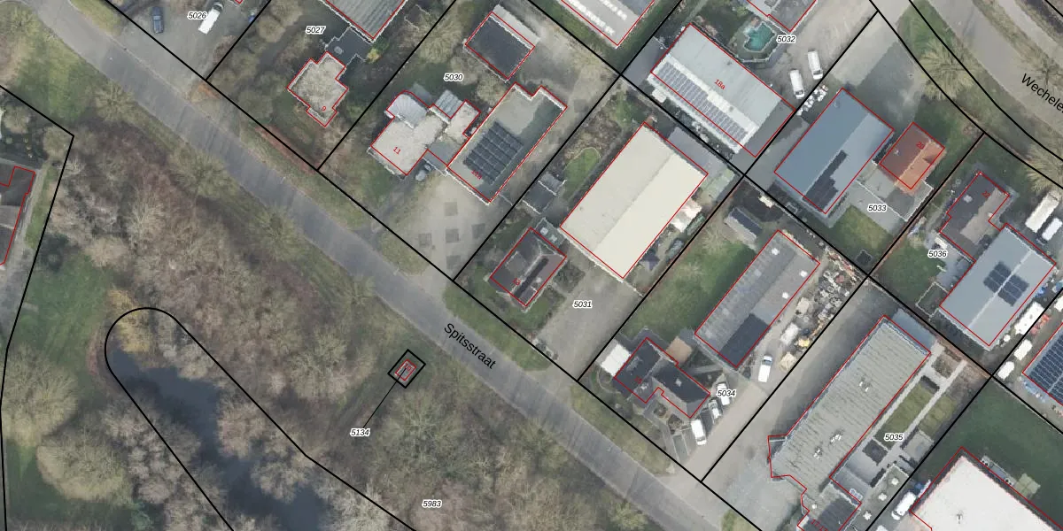 Het perceel waarop Spitsstraat 13 staat heeft een oppervlakte van 1505 m². Dit is een zeer groot perceel. De perceeloppervlakte wordt geregistreerd door het Kadaster. Gedetailleerde informatie over de maten van dit perceel kunt u vinden in het rapport Kadastrale kaart met maatvoering van Spitsstraat 13.