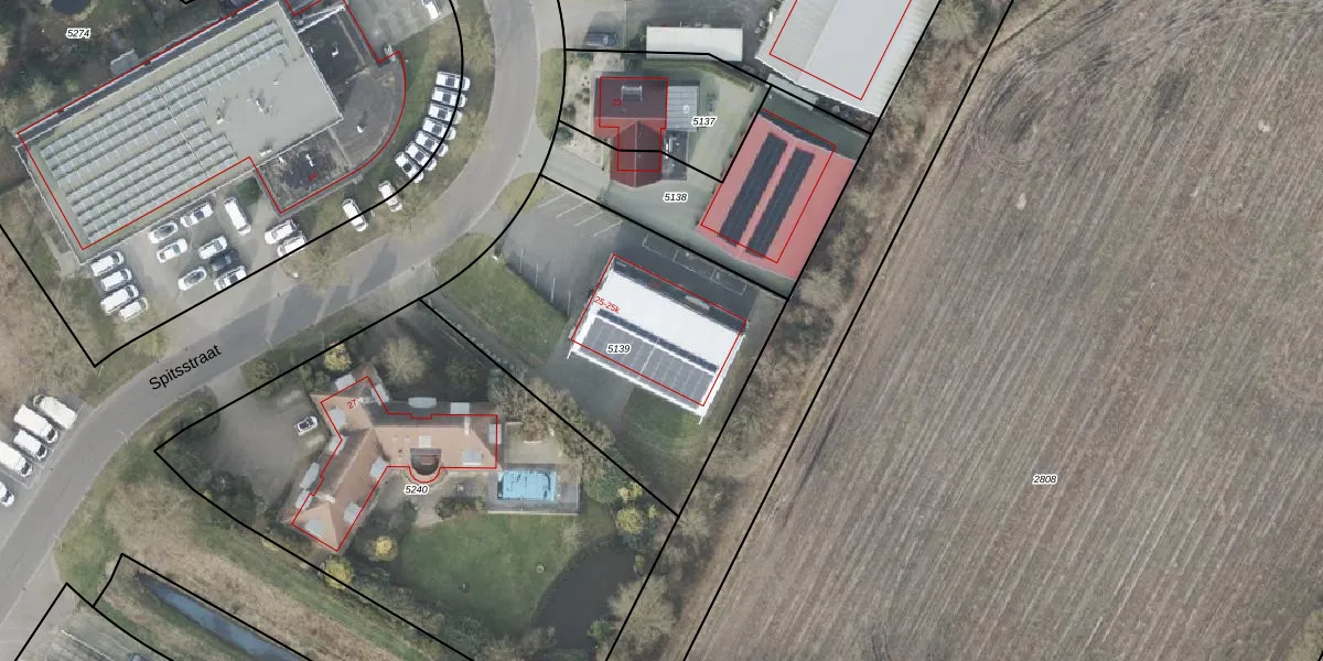 Spitsstraat 25-b is gelegen op kadastraal perceel RTE00F5139. Deze kadastrale aanduiding is uniek en wordt gebruikt door het Kadaster om eigendomsrechten en andere zakelijke rechten vast te leggen. Het perceel maakt onderdeel uit van de kadastrale gemeente Raalte.