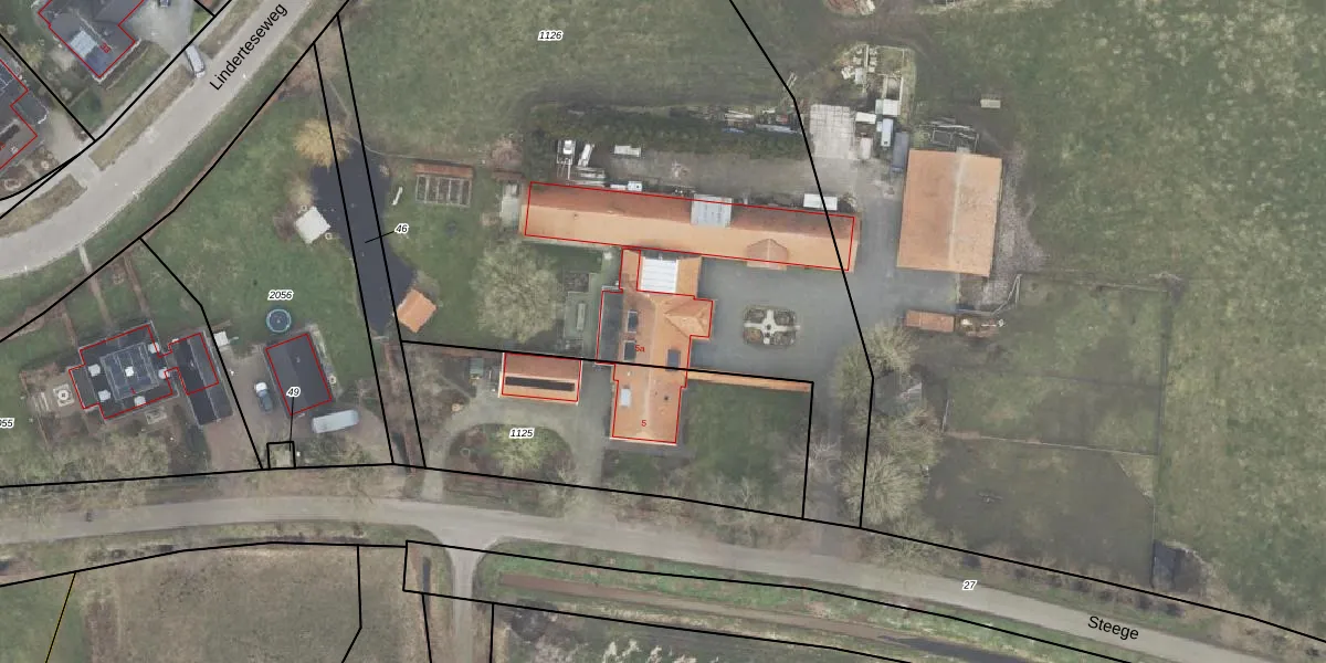 Het perceel waarop Steege 5-a staat heeft een oppervlakte van 5100 m². Dit is een zeer groot perceel. De perceeloppervlakte wordt geregistreerd door het Kadaster. Gedetailleerde informatie over de maten van dit perceel kunt u vinden in het rapport Kadastrale kaart met maatvoering van Steege 5-a.