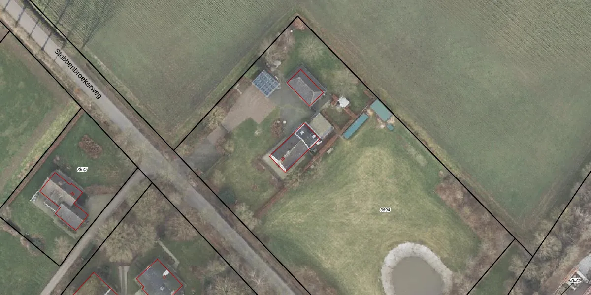 Het perceel waarop Stobbenbroekerweg 18 staat heeft een oppervlakte van 6560 m². Dit is een zeer groot perceel. De perceeloppervlakte wordt geregistreerd door het Kadaster. Gedetailleerde informatie over de maten van dit perceel kunt u vinden in het rapport Kadastrale kaart met maatvoering van Stobbenbroekerweg 18.