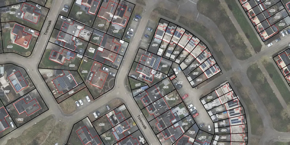 Het perceel waarop Torenvalk 28 staat heeft een oppervlakte van 251 m². Dit is een middelgroot perceel. De perceeloppervlakte wordt geregistreerd door het Kadaster. Gedetailleerde informatie over de maten van dit perceel kunt u vinden in het rapport Kadastrale kaart met maatvoering van Torenvalk 28.