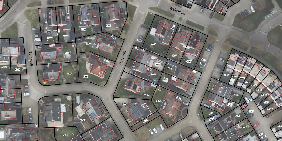 Het perceel waarop Torenvalk 42 staat heeft een oppervlakte van 260 m². Dit is een middelgroot perceel. De perceeloppervlakte wordt geregistreerd door het Kadaster. Gedetailleerde informatie over de maten van dit perceel kunt u vinden in het rapport Kadastrale kaart met maatvoering van Torenvalk 42.