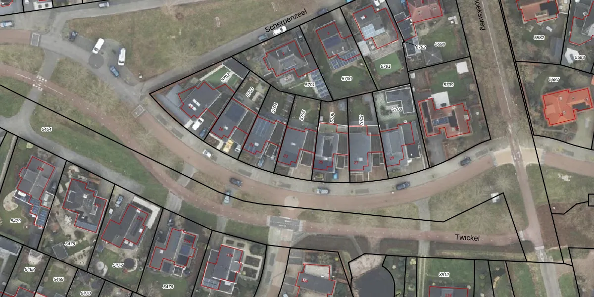 Het perceel waarop Twickel 23 staat heeft een oppervlakte van 300 m². Dit is een groot perceel. De perceeloppervlakte wordt geregistreerd door het Kadaster. Gedetailleerde informatie over de maten van dit perceel kunt u vinden in het rapport Kadastrale kaart met maatvoering van Twickel 23.