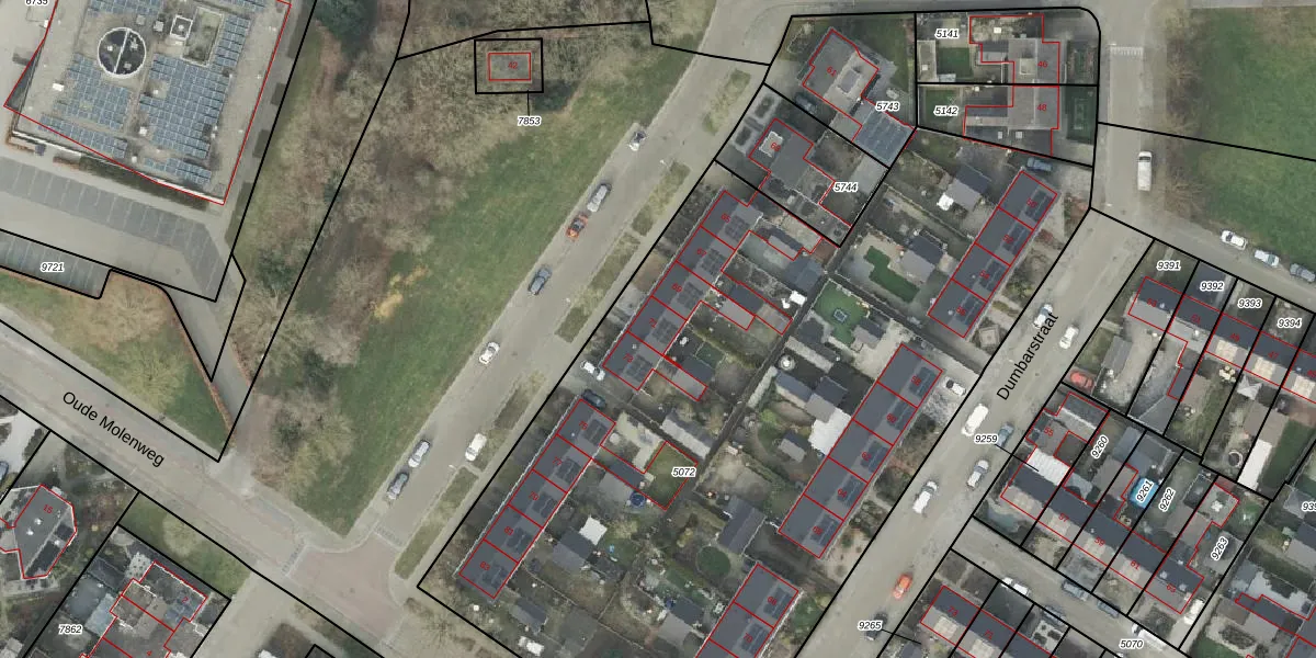Het perceel waarop van der Wijckstraat 71 staat heeft een oppervlakte van 4935 m². Dit is een zeer groot perceel. De perceeloppervlakte wordt geregistreerd door het Kadaster. Gedetailleerde informatie over de maten van dit perceel kunt u vinden in het rapport Kadastrale kaart met maatvoering van van der Wijckstraat 71.