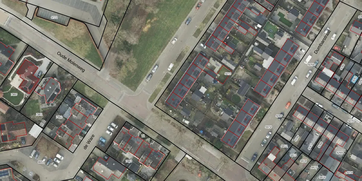Het perceel waarop van der Wijckstraat 81 staat heeft een oppervlakte van 4935 m². Dit is een zeer groot perceel. De perceeloppervlakte wordt geregistreerd door het Kadaster. Gedetailleerde informatie over de maten van dit perceel kunt u vinden in het rapport Kadastrale kaart met maatvoering van van der Wijckstraat 81.