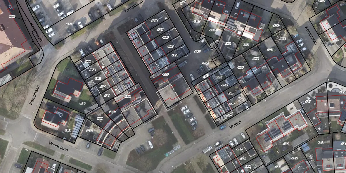 Het perceel waarop Velduil 29 staat heeft een oppervlakte van 363 m². Dit is een groot perceel. De perceeloppervlakte wordt geregistreerd door het Kadaster. Gedetailleerde informatie over de maten van dit perceel kunt u vinden in het rapport Kadastrale kaart met maatvoering van Velduil 29.