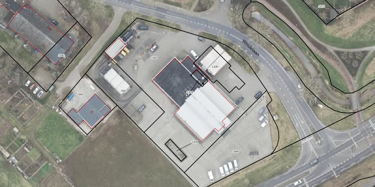 Het perceel waarop Weidelaan 2-a staat heeft een oppervlakte van 3306 m². Dit is een zeer groot perceel. De perceeloppervlakte wordt geregistreerd door het Kadaster. Gedetailleerde informatie over de maten van dit perceel kunt u vinden in het rapport Kadastrale kaart met maatvoering van Weidelaan 2-a.